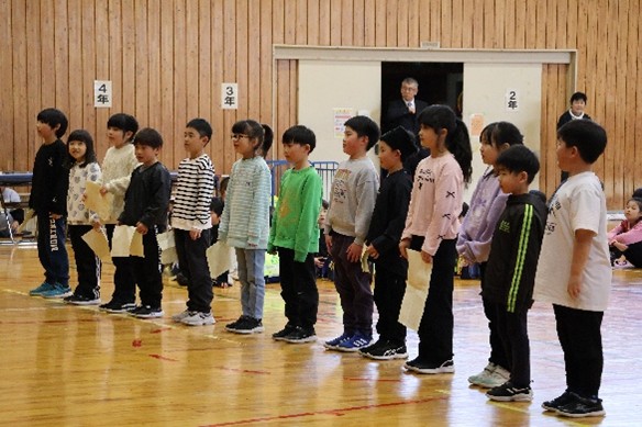 3学期がスタートしました。2年生、5年生の代表児童が、3学期の目標を発表しました。