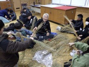 本年度お米作りを行った5年生。藁をたくさん取っておき、お正月に使用するしめ縄飾りを作った訳ですが、これがとっても難しい! 地域講師の皆様に教えていただきながら丁寧に藁を編む5年生の皆さんの真剣な表情が本当に素晴らしかったです!みんな徐々に慣れていき、立派なしめ縄飾りを完成させて大喜び! みんな良いお正月を迎えることができますね♪
