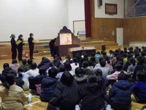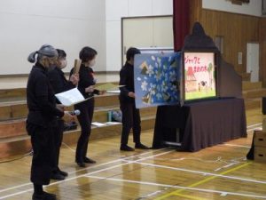 12月8日(月)、お話の会「でんでんむし」の皆様が来校し、全校の子どもたちに「大型紙芝居」を披露してくださいました!