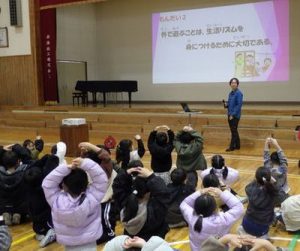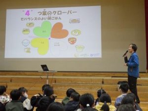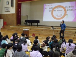 12月2日(火)、信州高遠青少年自然の家の職員さんが来校し、低学年の子ども達に「早寝早起き朝ごはん」のお話をしてくださいました!