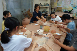 善光寺やテレビ局等を見学し、松代焼の窯元で作陶を経験した4年生の子どもたち。事前学習で得た知識を一つひとつ確認し、様々な出会いや体験に感動を覚えながら一日を過ごしました。