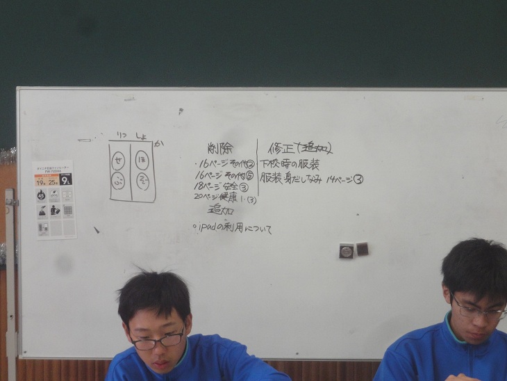1月29日(木)に生徒会委員会の時間がありました。今回は3年生が参加しないため、1・2年生での活動です。新体制ですが、新しい役員がしっかり準備していて、頼もしく感じられました。