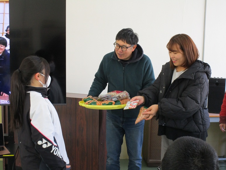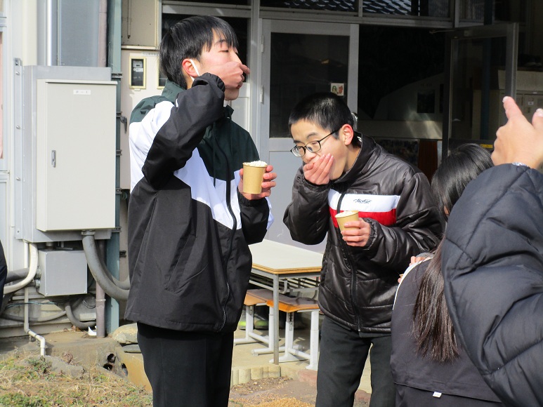 1月22日(木)、はせ農エン隊の方々が来校し、受験生応援としてポン菓子をプレゼントしてくださいました。今年は機械を持ち込んで、生徒の前で実演してくれました。受験生を応援してくださる方の思いに応えられるよう、決意を新たにしたようです。