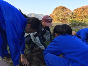 3 校長先生の作付け教室も行われました。伊那市は「暮らしの中の食」事業を行っています。学校教育の中に、農業体験を取り入れ、農・食への知識や感謝の気持ちを学びます。長谷中では、教育活動の大きな柱となっています。