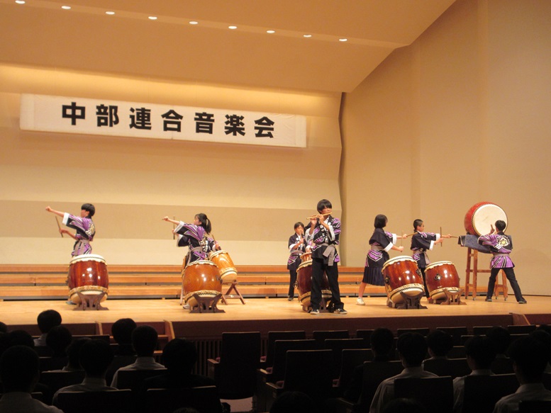 10月22日(水)、中部連合音楽会が開催されました。これは上伊那の中部地区、つまり伊那市の学校が集まる音楽会です。午前は小学6年生、午後は中学3年生が学校ごと発表します。長谷中3年生は、アメイジンググレース(ア・カペラ)と太鼓の演奏を堂々と発表しました。
