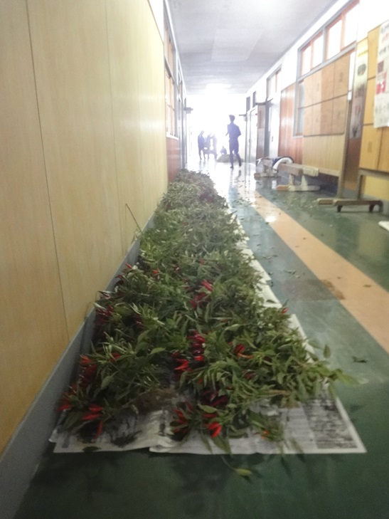 11月5日(水)、全校で唐辛子を収穫しました。2月の種まきからスタートし、これまで世話をしてきた愛着のある唐辛子です。今年は例年よりたくさんつくったので、収穫作業も大変です。美味しいラー油になってくれると思います。