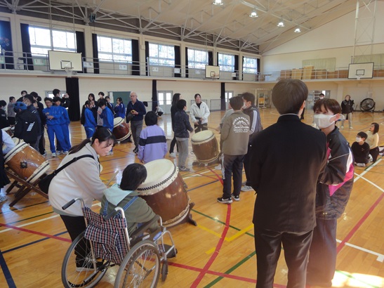 11月6日に、伊那養護学校中学部との交流会を行いました。太鼓演奏を披露したり、一緒にたたいてみたり、ボッチャを楽しんだりしました。とても楽しいひとときで、会の最後には再会を誓い合いました。