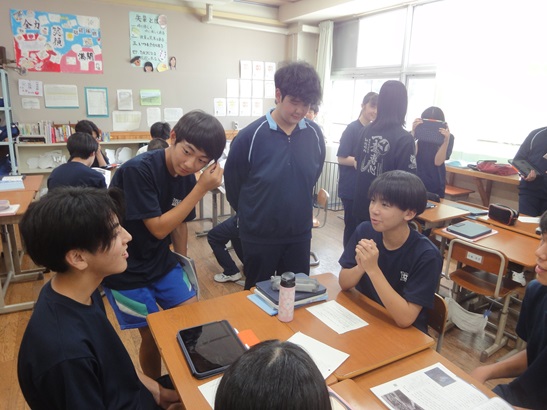 9月9日(火)に、高遠中学校との合同授業を行いました。8月26日には3年生が高遠中を訪問して行いましたが、今回は、1年生がオンラインで行いました。日頃、限られた人数で学習しているのとは異なる刺激がたくさん得られました。