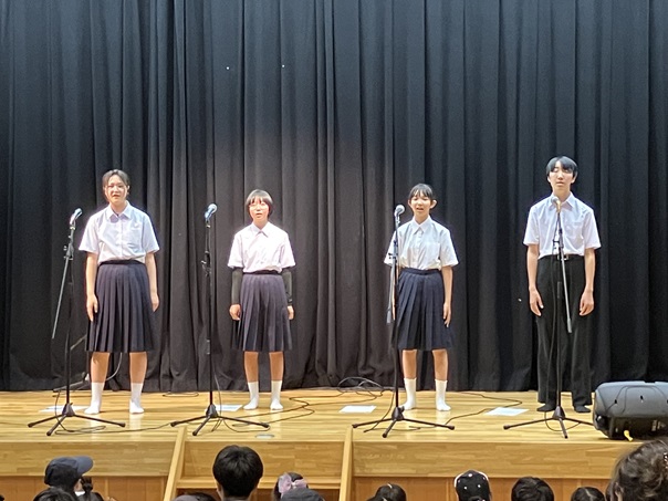 9月26日(金)、くろゆり祭の1日目です。開祭式に続き生徒会企画、学習発表を学年の部と個人探究の部に分けて行いました。「探究」は、昨年に続き夏休みを中心に、各自が興味関心を持ったテーマについてそれぞれの方法で調べたりまとめたりしたものを、4グループに分かれて全員が発表しました。