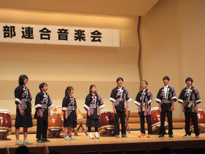 10月22日(水)、中部連合音楽会が開催されました。これは上伊那の中部地区、つまり伊那市の学校が集まる音楽会です。午前は小学6年生、午後は中学3年生が学校ごと発表します。長谷中3年生は、アメイジンググレース(ア・カペラ)と太鼓の演奏を堂々と発表しました。