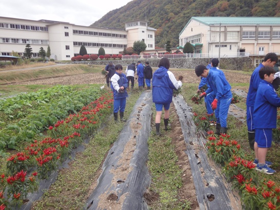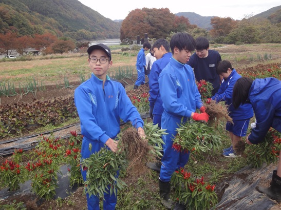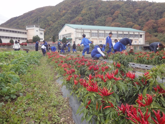 11月5日(水)、全校で唐辛子を収穫しました。2月の種まきからスタートし、これまで世話をしてきた愛着のある唐辛子です。今年は例年よりたくさんつくったので、収穫作業も大変です。美味しいラー油になってくれると思います。