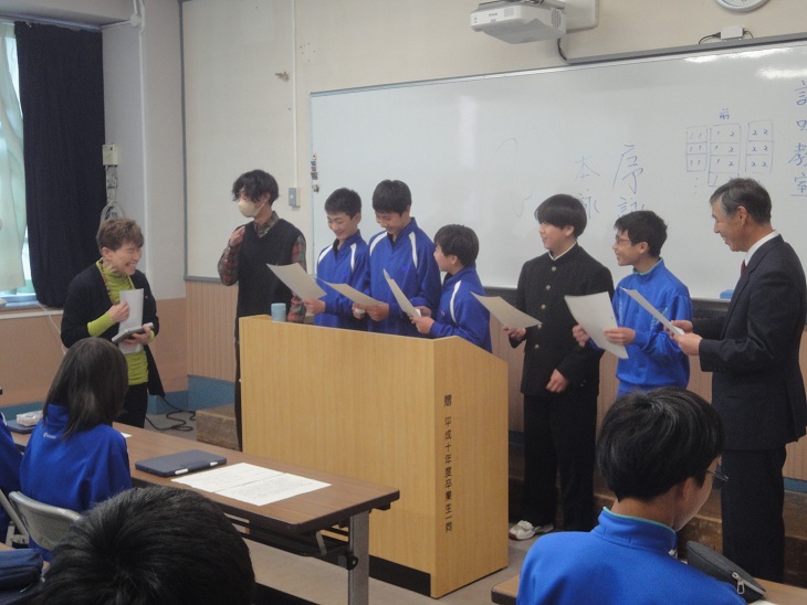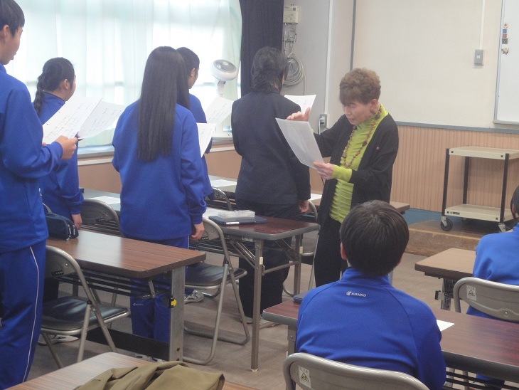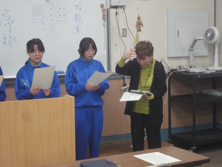 1月9日(金)に、1,2年生を対象に「詩吟教室」を開催しました。最初は恥ずかしそうな様子も見られましたが、少しずつ声が出るようになりました。今から来年の詩吟体験を楽しみにしている生徒もいるようです。