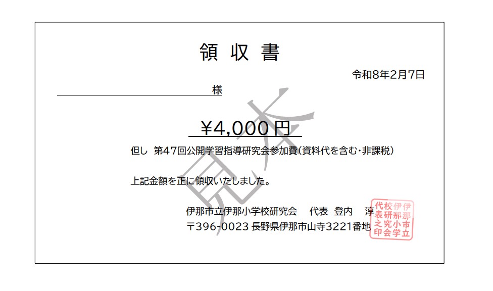 当日受付でお渡しする資料袋の同封しております領収書の見本を提示します。