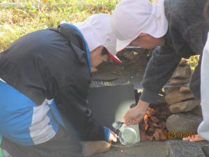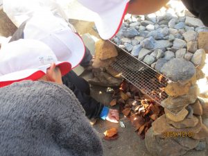12月1日、3年生では、「石窯でピザを作ろう」ということで、今火起こし体験を行っています。先日その活動の一環として、3年生が黒い画用紙に虫眼鏡で光を集めて火を起こそうとしていました。子ども達は、虫眼鏡の当て方を工夫しながら火を起こそうとしていました。そのうち、なんとか画用紙が燃えて穴があくのですが、それ以上に火が広がらず、子ども達は四苦八苦していました。3年生の最初からマッチやチャッカマンを使わず、自分達が理科の学習で学んだことを活かして虫眼鏡で火を起こす取り組みには、本気で活動に取り組もうとする姿が多く見られました。