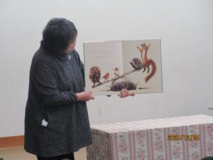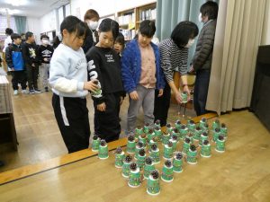 12月5日、読み聞かせボランティアさんたちが、読み聞かせスペシャルのために、工夫を凝らして、いろいろ準備していただきました。また、一人ひとりに松ぼっくりのけん玉のプレゼントをいただきました。感謝ですね。
