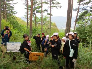 10月3日に、5.6年生の三界山登山が行われました。当日は、天候にも恵まれ、頂上から学校や遠くの景色も見られ、全員無事に登ることができてよかったです。また、登山道整備隊の皆さんや保護者の方が一緒に登っていただき、本当にありがたかったです。途中、紫しめじをはじめ、いろいろな種類のきのこが採れたみたいです。疲れたかもしれませんが、ふるさとの山に登れた経験は、子ども達にとって忘れられない心に残る思い出になり、ふるさとの自然の良さを実感できる機会にもなると思います。