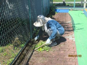 7月22日、23日にCS運営委員の皆様に来ていただき、校庭やプールの草取りと登校坂横の急斜面の草刈りをしていただきました。おかげで、気持ちよく夏休みを迎えることができました。暑い中、本当にありがとうございました。