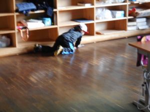 22日(月)は、南岸低気圧の影響で、都心でも交通渋滞で混乱が起きるほどの雪が降りました。新山は、思ったほどには積もらなかったものの、やはり降れば降ったで雪かきなど、なかなか大変なものです。しかし、そこは新山の子どもたち、何でも遊びにしてしまう天才的なところがあり、23日(火)の朝、この雪も待ってましたとばかりにさっそくそりで遊ぶのでした。「もっと降ってほしい!」と願う子どもたち。子どもは本当に元気です。