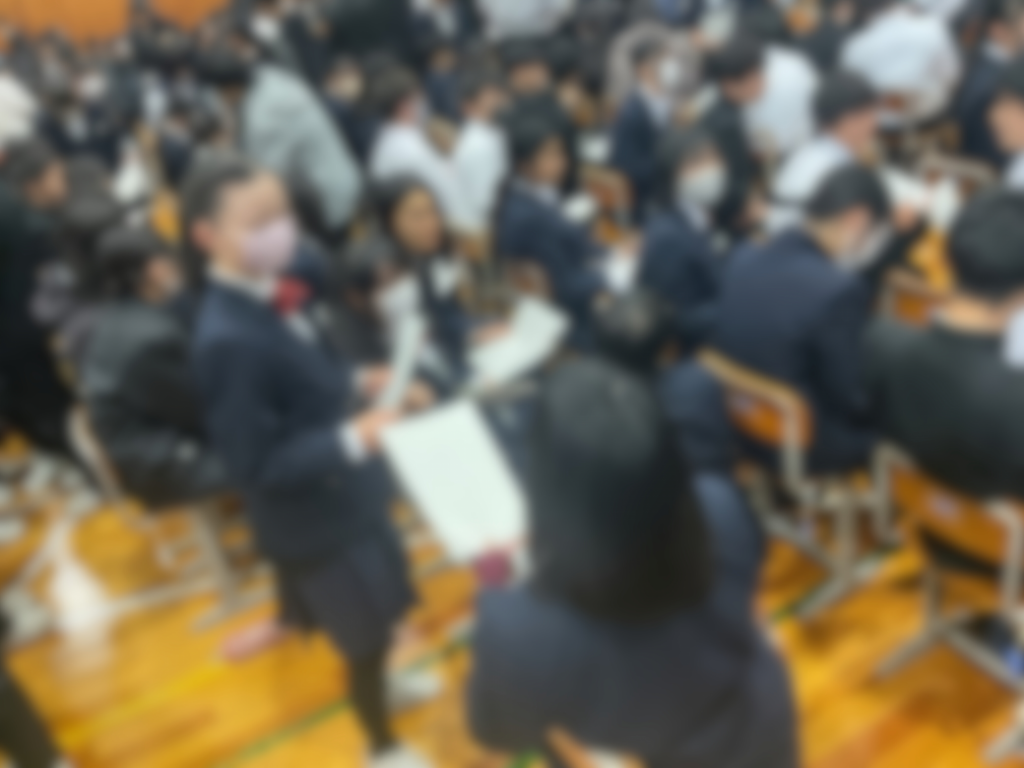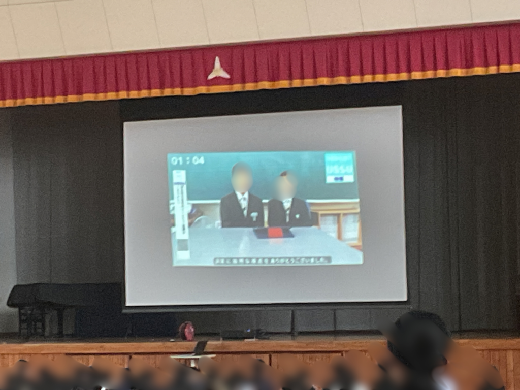 11月14日(金)6時間目に第二体育館にて生徒会本部会主催で行われました。今年度は仙台市立高砂中学校と動画を送り合う形で交流をしました。東日本大震災の被害や本校と高砂中との歩みの歴史、支え合うことの大切さ、人の温かみを知る機会となりました。これからの学校生活がさらに温かみのある日々になるように思いやりのある言動と行動を増やしていきます。