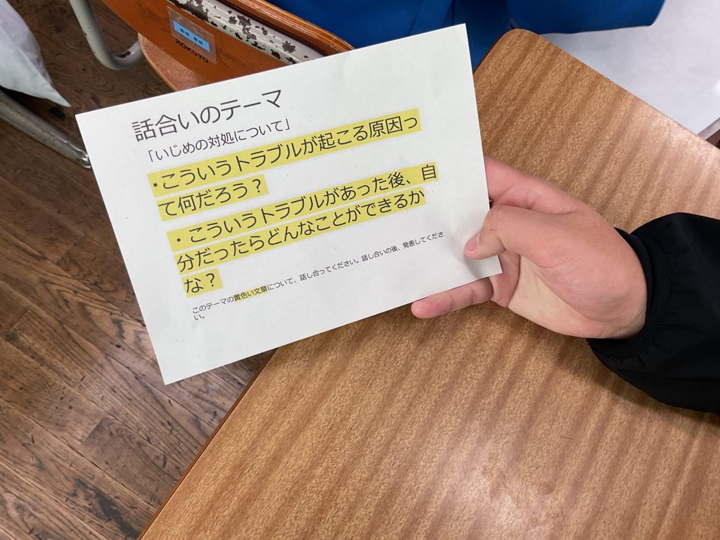 各クラスで「いじめの対処」について話し合いました。班ごとに意見をまとめ、発表・共有し、クラスとしての共通認識を高めました。