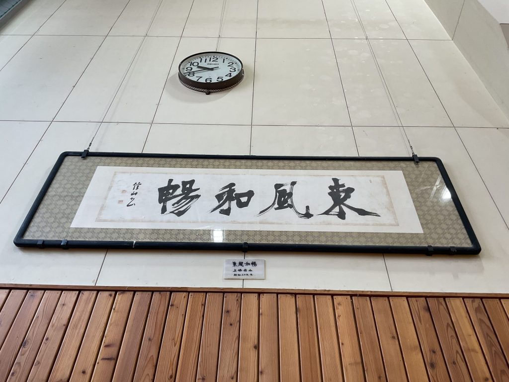 校長先生のお話では、昭和39年に寄贈され、第二体育館に掲示されている「東風和暢(とうふうわちょう)」について語られました。