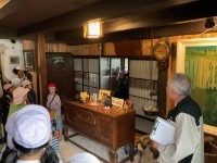長藤地区では、江戸時代に建てられたという古民家 千國屋跡を見せていただきました。ここは、講師を務めていただいた方が現在お住まいの家でもあります。古民具、古い論語写本等に加え、西洋美術品、クラシックカーなども見せていただき、手にふれて楽しむことができました。