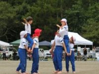 大人数の組体操で表現するのは高遠城の石垣であり、大手門であり、櫓。