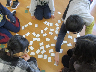 1月16日、百人一首大会を行いました。連学年(1・2年、3・4年、5・6年)に分かれての対戦でしたが、白熱した取り組みが見られました。どの児童にもお気に入りの一首があり、この札だけは!という声も聞かれました。