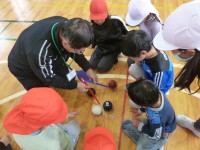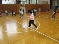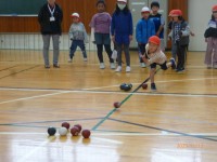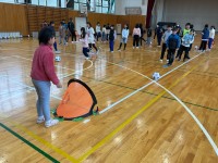低学年ではボッチャ体験、高学年ではブラインドフットボールチャレンジを行いました。後日、4年生はアイマスク・ゴールボール体験 、5年生は点字体験も行います。