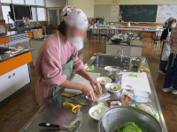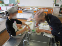 ・ごはんをたく ・自分でおかずを 一品以上つくる ・おかずを 自分でつめる ・すべて 自分で作る など、家族と相談して目標を決めています。 6年生は学校でお弁当作りを行いました。