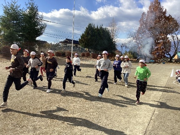秋晴れのさわやかな空の下、全校でマラソン記録会を行いました。