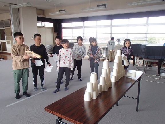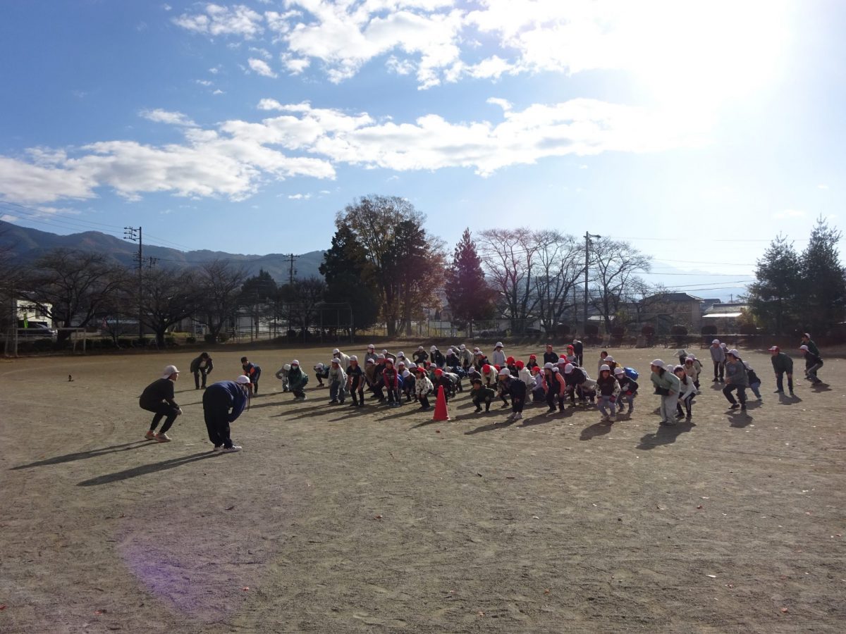 新山小のお友だち、ちょっと圧倒されている様子でしたが、体育館でおにごっこやいろんなゲームをして楽しむうちに、どんどん仲良くなっていきました。