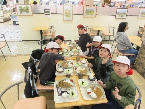 ↓ジャガイモを売ってかせいだお金で、ベルシャインでカレーとデザートを食べたよ。