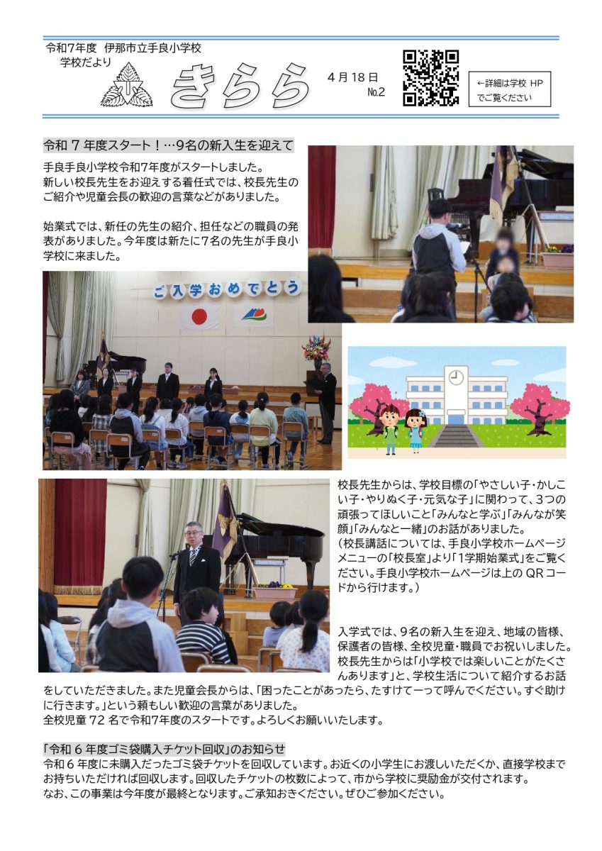 2月学校だよりNo.2(2月28日) 令和7年度4~6月主な行事予定