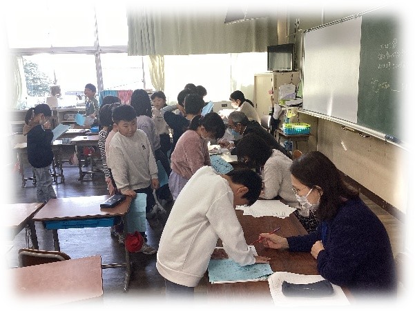 本年度も、読み聞かせボランティア「ごんべえ」の皆様による「読み聞かせ」、学習支援ボランティアの皆様による1~3年生への「〇付け隊」及び4~6年生への「学習支援」、3・4年生への「習字ボランティア」、5・6年生への「ミシンボランティア」と、多岐にわたる活動に多くの地域の皆様や保護者の皆様からご支援をいただきました。ありがとうございました。